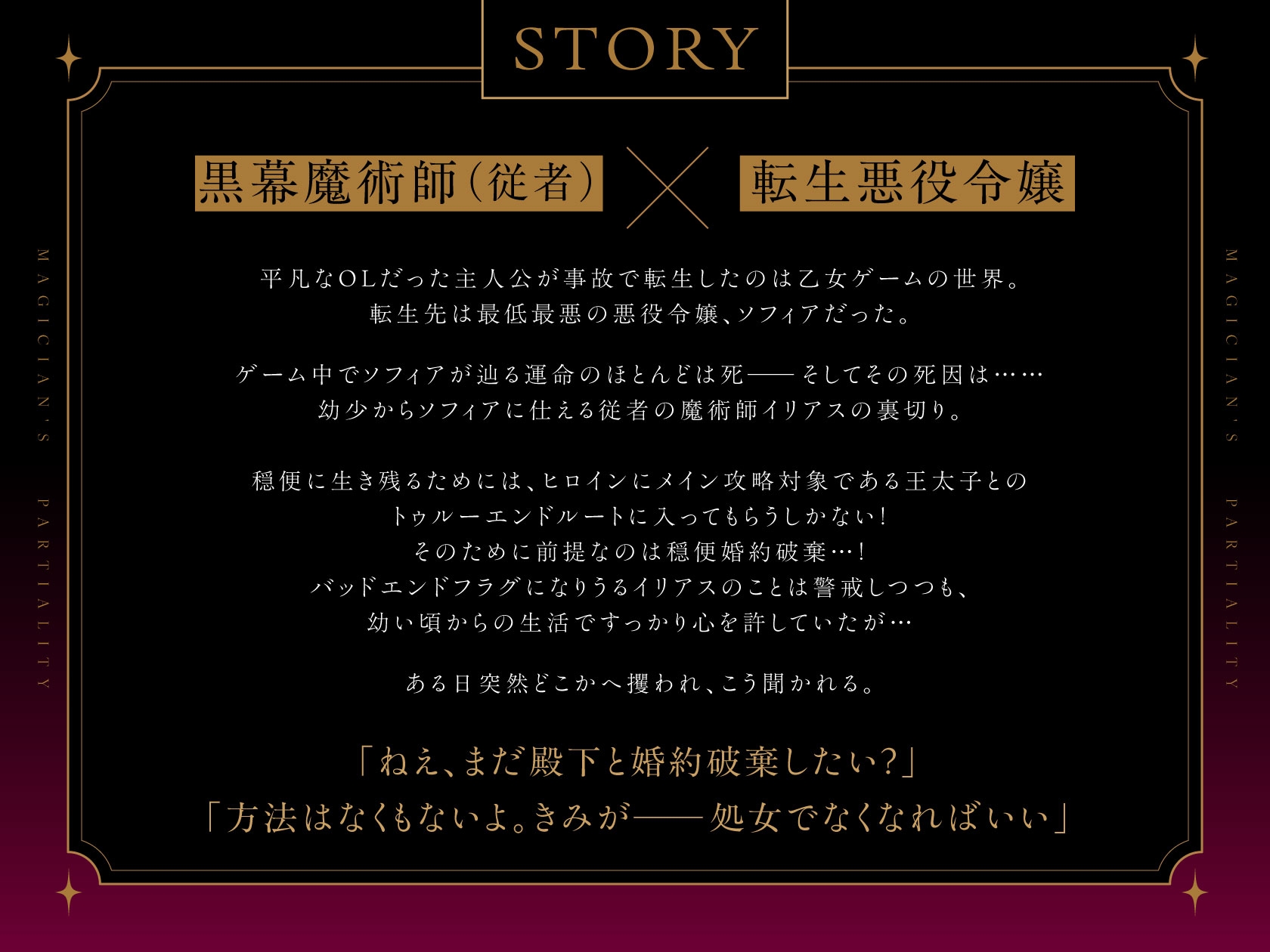 ゲーム中でソフィアが辿る運命のほとんどは死───そしてその死因は……幼少からソフィアに仕える従者の魔術師イリアスの裏切り。